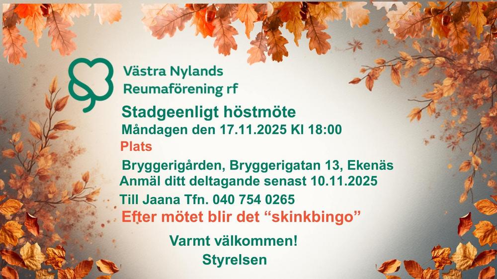 "Välkommen till vår förening för gemenskap och samhörighet med andra som har reumatiska eller andra sjukdomar i rörelseorganen. Även anhöriga som vill vara delaktiga är välkomna! Eller kanske du bara vill vara med av andra skäl! Alla kan bli medlemmar. Medlemsavgiften är 20 € per år.